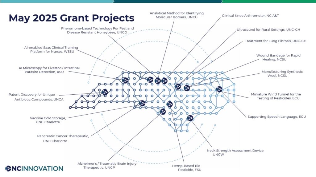 “North Carolina’s public universities are working on truly amazing technologies, from improving poultry and livestock mortality rates to treating diseases like Alzheimer’s and pancreatic cancer,” said Michelle Bolas, executive vice president and chief innovation officer of NCInnovation. “NCInnovation helps researchers advance their discoveries through the university R&D process toward commercialization, strengthening the university-to-industry pipeline that’s central to American competitiveness.”